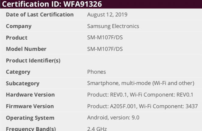 سامسونگ گلکسی ام ۱۰ اس مدل دیگری از سری M است که موفق به کسب مجوز Wi-Fi خود را از مرجع نظارتی مربوطه شده است. وبسایت رسمی Wi-Fi Alliance لیست جدیدی را پیرامون گوشی بعدی سامسونگ با مدل SM-M107F/DS منتشر کرده است. این شماره مدل احتمالاً مربوط به سامسونگ Samsung Galaxy M10s باشد که نسخه بهروزرسانیشده گلکسی ام ۱۰ به حساب میآید. وجود حروف DS در نام این مدل نشان از دوسیمکارته بودن آن است. انتظار می رود که این گوشی به زودی در بازار هند عرضه شود. در واقع این بازار سرآغاز عرضهی درسطح جهانی این محصول سامسونگ خواهد بود.