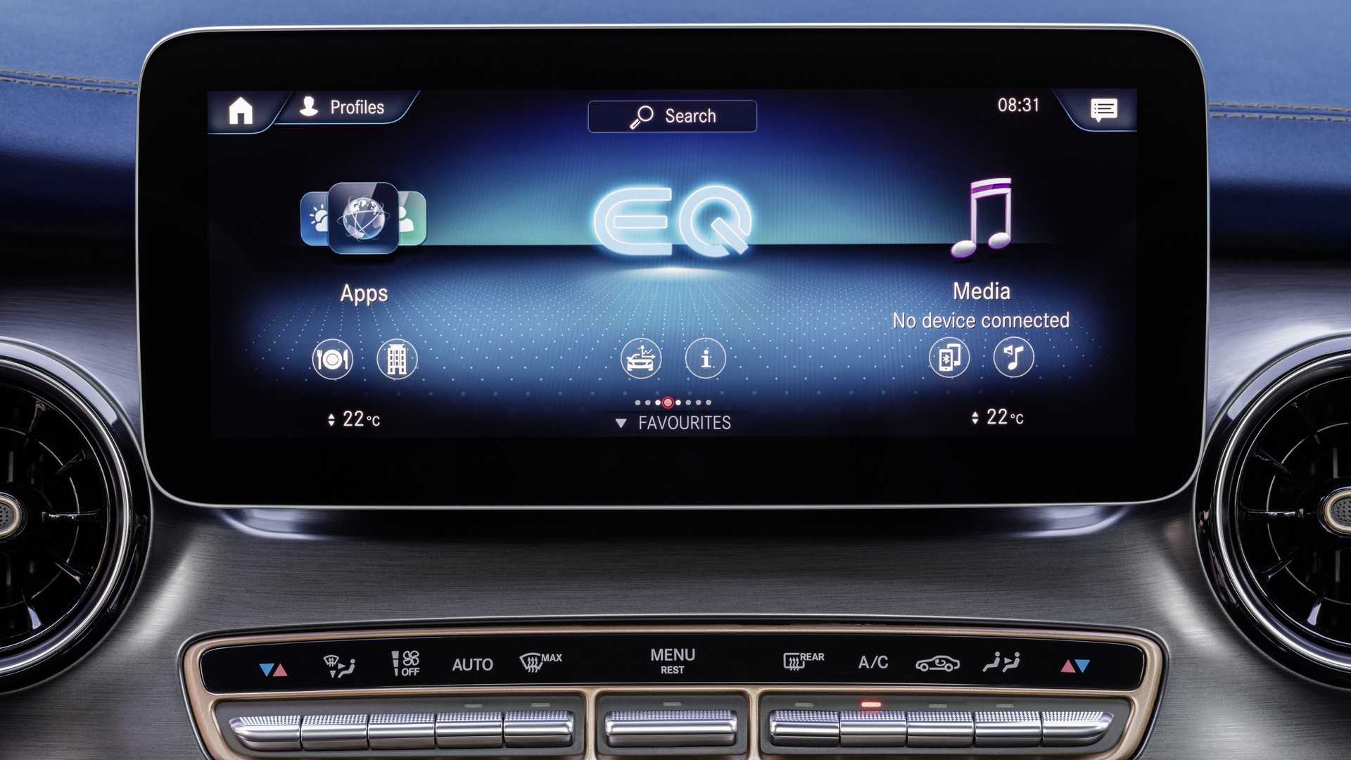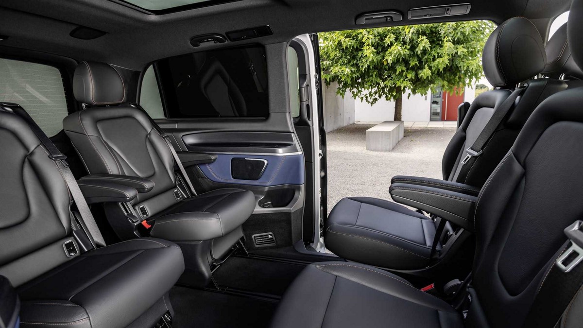 فضای قابل توجه کابین داخلی برای یک مسافرت ۷ الی ۸ نفره راحت بوده و نمایشگرهای ۱۲٫۳ اینچی داخل کابین با سیستم اطلاعات و سرگرمی MBUX، امکان ویژه این ون است. با کمک MBUX پخش موزیک، تنظیم صدا، تنظیم دمای کابین و بسیاری موارد دیگر برای سرنشینان فراهم خواهد شد.