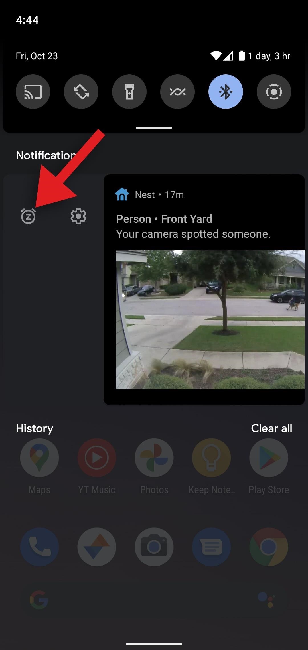 در اندروید ۱۰ گوگل این قابلیت را بصورت پیش فرض غیر فعال کرد! در عوض زمانی که نوتیفیکیشن را سوویپ میکنید، تنظیماتی مشاهده میکنید که گزینههایی برای تنظیم آلارم در اختیار شما قرار میدهد.