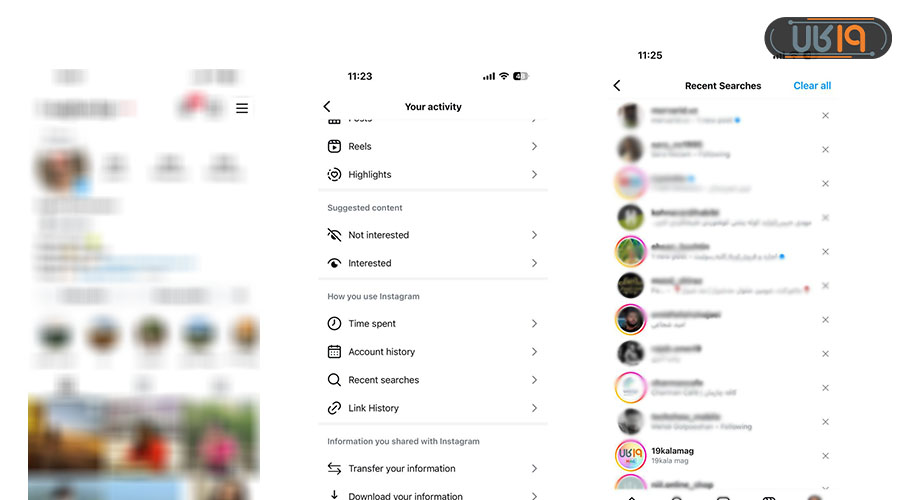 بسته به تعداد دفعات جستجوی محتوا در اینستاگرام، لیست جستجوهای اخیر شما ممکن است از کنترل خارج شود. پس بهتر است به طور منظم تاریخچه جستجوی اینستاگرام خود را پاک نمایید. اگر می‌پرسید سابقه جستجو در تنظیمات اینستاگرام کجاست مراحل زیر را دنبال کنید: