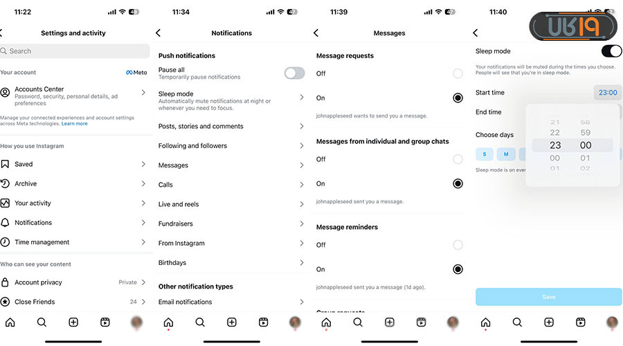 در همین بخش گزینه‌ای به نام Sleep mode وجود دارد که با فعال کردن آن می‌توانید در ساعات خاصی که مشخص می‌کنید، هیچ اعلانی برای شما نمایش داده نشود.