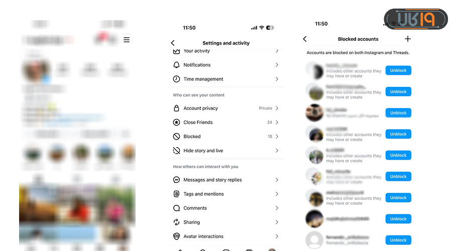 حساب‌های مسدود شده نمی‌توانند تصاویر یا ویدیوهای شما را ببینند یا نام شما را جستجو کنند. برای مسدود کردن یک یا چند حساب در تنظیمات صفحه اینستاگرام مراحل زیر را دنبال کنید: