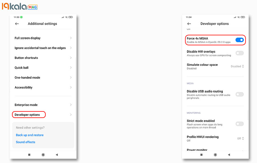 برای فعال کردن قابلیت Force 4X و بالا بردن گرافیک گوشی شیائومی ، سامسونگ و دیگر مدل‌های اندرویدی به صورت زیر عمل کنید: