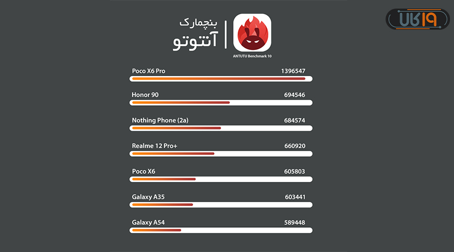 بازیهایی مانند League of Legends Wild Rift با تنظیمات بالا و نرخ نوسازی ۶۰ فریم بر ثانیه به خوبی روی این گوشی اجرا میشوند. ضمناً شاید گوشی در مدت زمان طولانیتر بازی گرم شود، اما هرگز داغ نمیشود. در اینفوگرافی زیر امتیاز بنچمارک انتوتو در مقایسه با سایر گوشیها برای این مدل میبینید.