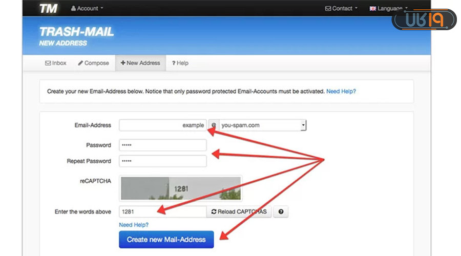 ✔️ ساخت ایمیل یکبار مصرف با رمز به این صورتست که به سایت trash-mail.com رفته و آدرس ایمیل مورد نظر خود را وارد کنید. در منوی کشویی کنار آن، نام دامنه مورد نظر را انتخاب کنید و تصویر نمایش داده شده ترکیبی از اعداد یا حروف را نشان میدهد که باید در قسمت زیر به درستی وارد شوند. در آخر، با کلیک روی دکمه «Create new Mail-Address» آدرس جدید ایجاد میشود. برای آگاهی از جزئیات این امر به مقاله مراجعه کنید.