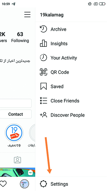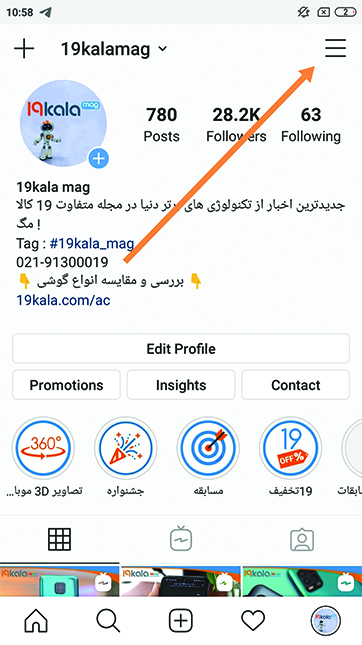 ۱. وارد حساب کاربری اینستاگرام خود شده و در قسمت پروفایل بر روی setting کلیک کنید.