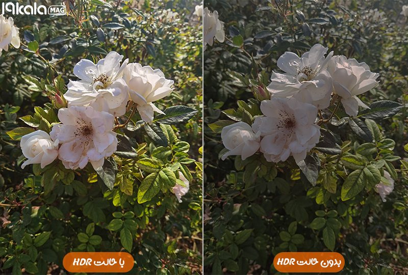 برای درک بهتر از یک سوژه یکسان دو عکس در حالت فعال و غیرفعال بودن HDR ثبت کردهایم، همانطور که میبینید تصویری که با HDR گرفته شده هم کیفیت بهتری دارد و هم نمایش رنگ درستتری داشته است. به طور کلی HDR باعث جذاب شدن تصویر شما خواهد شد!
