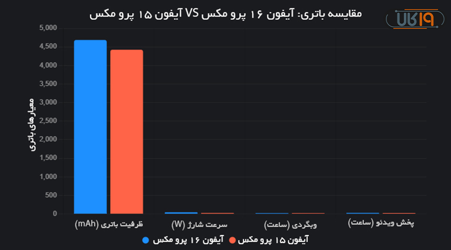 | باتری | ۴۶۸۵ میلیآمپرساعت، شارژ سیمی ۴۵ وات، MagSafe 25 وات، Qi2 15 وات | ۴۴۴۱ میلیآمپرساعت، شارژ سیمی ۲۷ وات، MagSafe 15 وات |
